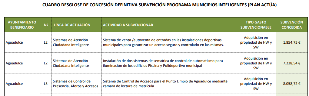 Desglose de concesion definitiva subvencion programa municipios inteligentes (Plan Actua)